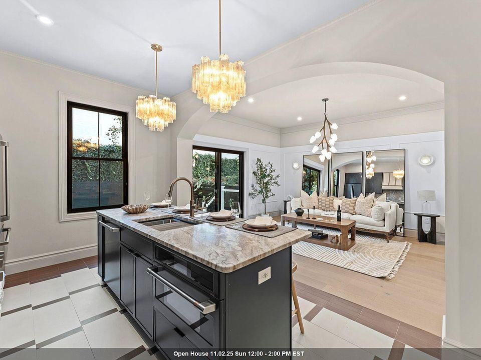 On tree-lined Liberty Place in Weehawken, this oversized boutique four-bedroom, three-bath, two-floor condominium with a fully private yard, reimagines what it means to live beautifully along the Hudson. Developed by the acclaimed CJ Investment Group, with interiors envisioned by designer Kathy Samaan, this residence blends intelligent layouts with bespoke craftsmanship at every turn. Sunlight fills expansive great rooms, where custom millwork and statement lighting create a sense of timeless sophistication. The kitchen commands attention with sleek cabinetry, a matte-black GE Café appliance suite, striking leathered granite countertops, and a large center island with seating—perfectly designed for both culinary creativity and casual gatherings.