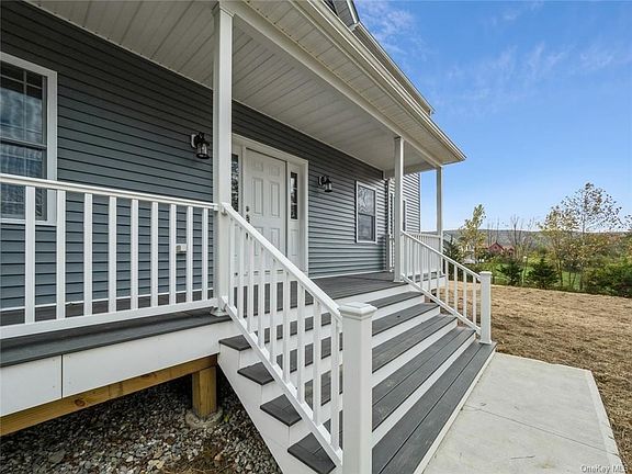 Move Right In! Brand new Colonial with rocking chair front porch and large rear deck perfect for appreciating the bucolic setting & mountain views. Enormous LR with gas fpl & double SGDs. EIK with loads of white cabinets, large center island in grey, granite counters & subway tile backsplash. The main level features espresso-stained HW floors, 9' ceilings and 5 1/4' base moldings. Loads of large windows throughout to bring in the natural light and showcase the captivating views. The primary en suite has large walk-in closet, private bath with tiled 5' shower and double bowl vanity. The 3 addl bdrms share the main bath which has a tiled tub/shower and large vanity. This level also features a fabulous bonus rm with lots of windows and perfect for media, games, hobbies, sleeping or work. Full unfin bsmt with walkout offers potential for future addl living space. Close to major commuter routes, schools, shopping, recreation & only 90 mins from NYC.