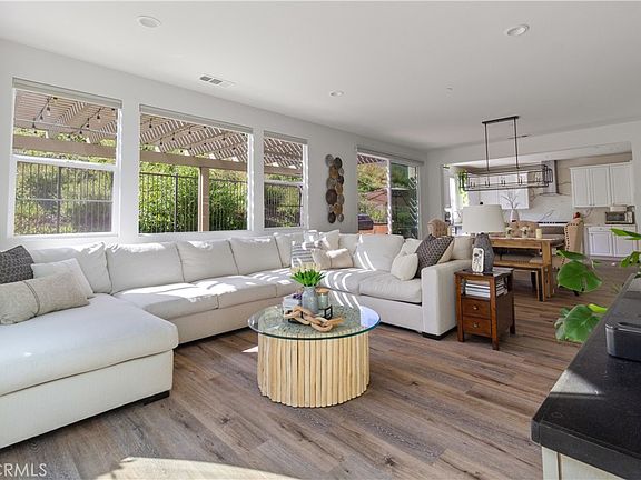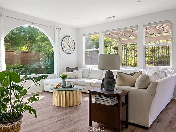 Welcome to this stunning contemporary home with modern luxury living. The interior is spacious and is bathe with natural light! This residence offers 4 bedrooms with ONE of those rooms being on the MAIN FLOOR,with a FULL BATHROOM, a great addition for guests or in laws not needing to go up stairs. The Kitchen includes an expansive island with bar stool seating, crisp white cabinets, Quartz countertops and a farm house sink. The Primary Suite has a large spa Bath, Dual Vanities and Oversized Shower with large master closet. Enjoy this private backyard with built in barbecue and patio with pavers/pathways all through out. Great space for entertainment and for kids to play,2 car garage,with epoxy flooring, and overhead garage storage. HOA amenties include Pool/Spa/Gym/Biking Trails/Tennis Courts and so much more! Close to shops, mall and 9 Miles away from the beach! Don't miss this opportunity!