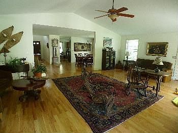 Spacious Colonial in a convenient yet private location, impressive architectural design. 1st floor Master Suite with custom tile shower, double sinks, jetted tub, walk-in closet. Open 1st floor concept has dining area, LR with cathedral ceilings and fireplace, leads to large deck. Great flow for entertaining. Plenty of storage space in attached two car garage and full basement. Wood and tile floors throughout, low West Gardiner taxes.