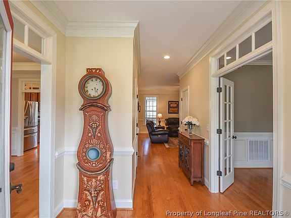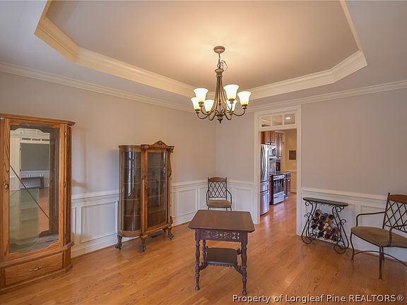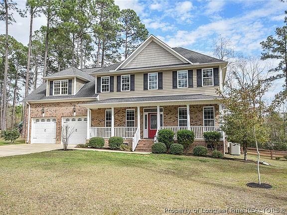 Carolina Lakes Gated Community! 5 bed 3.5 bath 2 story home with a beautiful front porch to watch the sunsets. Hardwood floors flowing throughout the first floor main living spaces as well as transom windows about doorways. A flex room with french doors, a formal dining room with chair rail and tray ceiling leading into the expansive kitchen with lots of granite counter space, space for an island and pantry with pocket door and custom adjustable shelving. Open concept to the living room featuring a fireplace as well as the morning room/additional eating space overlooking the wooded view over the backyard. Master suite on the first floor with a massive walk-in closet, double sinks, jetted tub separate private shower and potty. Upstairs you’ll find 4 more bedrooms one being another master suite, a full bathroom off the hallway, bonus room and laundry room with custom built-ins. Screened-in porch, patio and fully fenced backyard. Walking distance to the bus stop, lake access and dam.