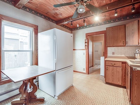 OFFER DEADLINE APRIL 11- 6 PM.Conveniently located a block from downtown with shops, restaurants, beautiful library and YMCA. The classic low maintenance exterior has updated windows and doors, vinyl siding in good condition and an architectural shingle roof. You'll love the level fenced-in yard, level driveway and nicely done enclosed porch. Inside you'll find an older kitchen with wooden ceiling, a separate pantry and laundry room, full bath with some nice updates, dining room with wood floor, a generous LR and a 1st floor BR, office, den, etc. Three more BR's are on the 2nd floor. The smallest BR would make a nice office, nursery or maybe a future 2nd bathroom. Please call today!