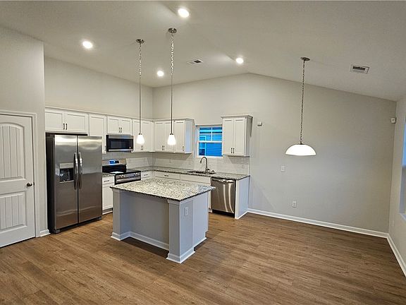 Savannah's most trusted local builder is proud to offer our Spring Garden TR plan. This home has some excellent features and upgrades including front Elevation E with brick ledge, fully sodded and irrigated yard with automatic timer, 12' x 12' back patio, 2 sink quartz vanity top in primary bathroom, 5' shower in primary bathroom, garage door opener with 2 remotes, 2 pendant lights over kitchen island, ADT security package, click plank waterproof LVP flooring in main living areas and all wet areas, 36" cabinet upgrade, granite top and tile splash in kitchen, all stainless appliances including refrigerator in kitchen, framed mirrors in all bathrooms, and stained oak handrail with iron balusters downstairs. Completion date is estimated to be May 2025. Pictures, features, and selections shown are for illustration purposes only and may vary from the actual home built. All builder incentives applied.
