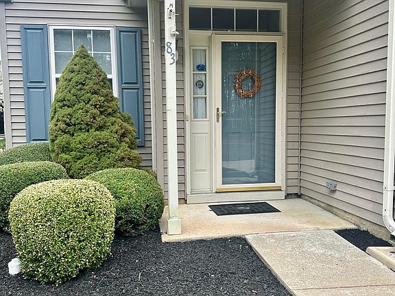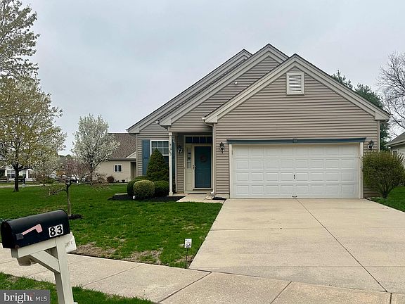 83 Mayfair Rd is ready for your presence. Situated on a spacious corner premium lot within Leisuretowne, a 55 plus community, this Gas Kenwood model features 1561 sq ft, 2 bedrooms, and 2 bathrooms. The living room and dining room form a seamless transition. The kitchen, complete with Oak Cabinets, Formica Countertops and newer Stainless Steel Appliances adjacent to the family room, providing access to the side patio via a sliding door. Ready for entertaining and relaxing. Notably, all patio side windows feature roll out awnings, ensuring sun protection on warm days. The Primary Ensuite has 2 walk in closets and 1 additional closet. A window seat allows plenty of natural light to this room. The 2nd Bedroom is close to the guest bathroom. Plenty of storage in the 2 car garage with 2 remotes to the automatic garage door opener. Garage has inside access through the laundry room. This lot showcases beautiful landscaping, aided by a sprinkler system, winterized and ready for new owners to activate in the Spring season. The roof is approximately 5 years old, and the HVAC is approximately 8 years old. This lot also boasts private woods to the front and side. Easy access to Rt 70 and Rt 206. 45 minutes to Long Beach Island, 45 minutes to Center City Philadelphia. Plenty of restaurants and shopping near by. Come take a peak, you will leave wanting to put your offer in!! Call this one home. Inside photos to follow.