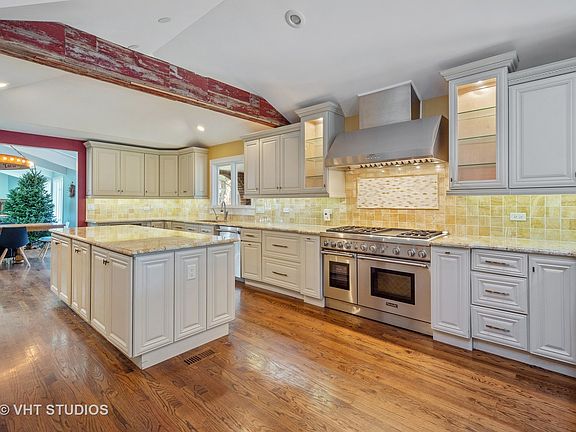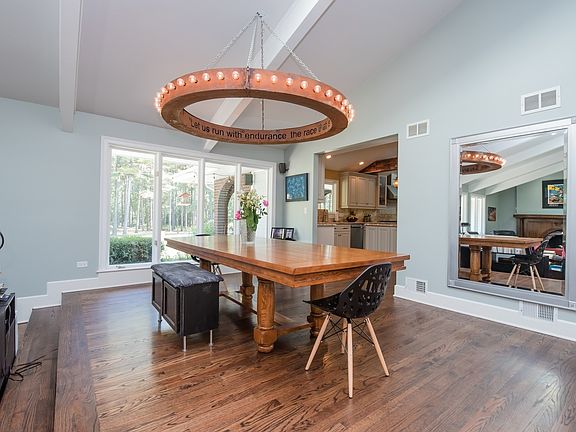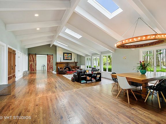 This secluded retreat will have you feeling like you're in the Rockies of Colorado! Surrounded by towering pine trees for a serene and peaceful setting, this beautiful remodeled ranch home is just what you've been waiting for! Gourmet kitchen with high-end appliances, countertops and finishes; sprawling open floor plan with 4 bedrooms/4.1 baths plus a Florida/sun room! Lower level has exterior access, a fitness and rec room plus a dedicated work/hobby space! Do you love the outdoors? Enjoy the sparkling pool and fire pit surrounded by your very own forest! 3-car heated garage with showroom flooring and circular driveway with electronic gated entry. One of a kind home is tucked away but close to amenities - train, shopping and Barrington schools!