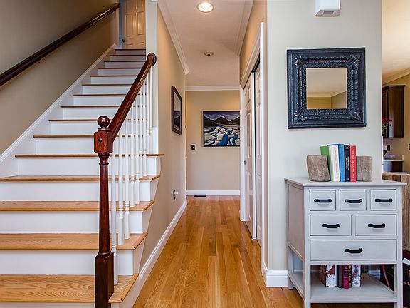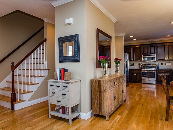 WELCOME TO THIS STUNNING END UNIT TOWNHOME! ENJOY THE CLOSE PROXIMITY TO THE TRAIN AND DOWNTOWN! Great floor plan with open concept, living room, dining area w/beautiful cabinet packed kitchen, w/pretty updated back splash, quartz counters. and ss appliances. Enjoy first level main bedroom suite w/large bright updated main bath and walk in closet. 2nd level features two large bedrooms w/loads of storage and 2nd full bath. Lower walk out level includes, family/game room, office and exercise area all in one great space. Enjoy pretty front porch, spacious side deck and the expansive and private back yard!! Lots of overflow parking for your guests! Superior location to downtown events on the common, library, church, stores and the train. Showings start immediately.