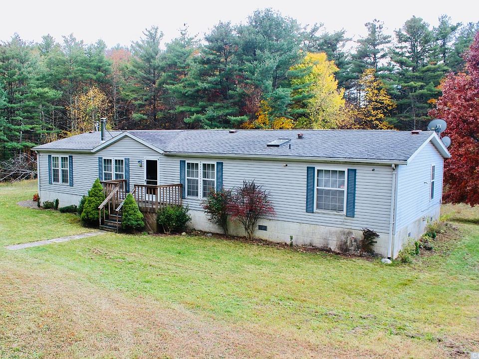 Single story ranch with full deck on back of the house. Full glass sunroom on side of house with wood stove. Country living, with solitude and privacy, but still within 5 minutes of shopping and everyday essentials.