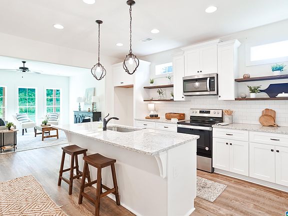 MOVE IN READY! The Torbert C is a beautiful 3-bedroom, 2 bathroom, 1366 sqft home, with a front entry single car garage. The entry way opens up into a foyer that leads on one side to the two guest bedrooms with a shared full bathroom, and on the other side into the open concept kitchen, living, and dining areas. The dining area has upgraded judge's panel. The kitchen features a large island with plenty of cabinet space. Just off of the kitchen is the laundry room, which leads into the front entry garage. Through the kitchen we find the living room filled with natural light from the large windows. The master bedroom sits at the back of the home and features a private en-suite with a large walk in closet and private tub/shower with a single vanity. master bedroom has upgraded accent wall. Through the back door is a spacious covered patio perfect for outdoor seating