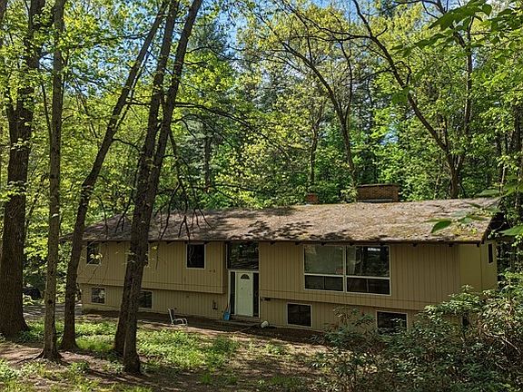 Fantastic location in a great neighborhood in North Amherst. Walk to Cushman Market and PVTA bus stop in Cushman Center. Currently an investment property generating $3900 a month (under market value). Mid-century design with vaulted ceilings in the kitchen, dining, and living rooms. Upper level features four bedrooms, large kitchen with attached laundry room, built-in cabinetry and brick fireplace in the living room. The lower level of this raised ranch includes another kitchen, a bedroom, living room with walk-out to a two-story deck, bonus room and direct access to a two-car garage. The paved driveway offers parking for several additional cars. Located on a quiet circle with very little through traffic. Close to shopping, schools, restaurants, highways and only five minutes to downtown Amherst!