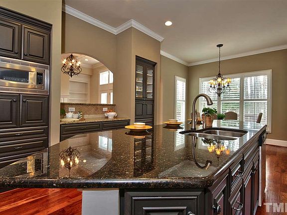 Luxury Living on Premium lot at The Preserve at Jordan Lake! Across the street from pool, fitness center, tennis, club house. Enjoy the view of the No. 2 Fairway from the deck. Stunning details in this custom home include first floor master suite w/trey ceiling & jacuzzi tub; gourmet kitchen w/island, granite, gas cooking, walk-in pantry, built-in refrigerator, butler panty w/beverage cooler; light & bright family room w/built-ins & coffered ceiling; plantation shutters, cherry floors, screened porch.