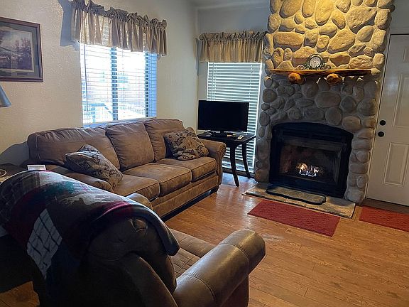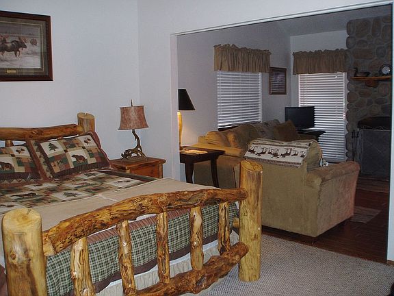 Located on top floor ... gas fireplace, new appliances, queen log bed. Park n Walk Location