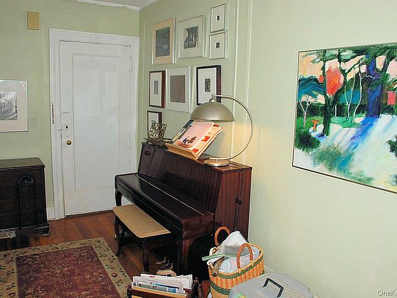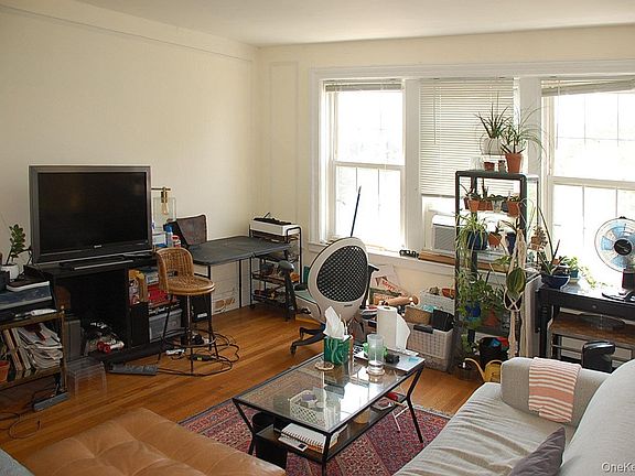 Bright 1-Bedroom condo in a classic pre-war building. GREAT top floor southern exposure with three sides to the apartment. All rooms have big windows facing different directions with park-like views. The unit features a large living room with working fireplace, extra large bedroom, and a renovated eat-in kitchen with newish appliances. Large foyer serves as home office or could be a dining area. Hardwood floors throughout along with 9 foot ceilings and crown molding. The building features laundry room, bike room, assigned storage in basement and a grassy area in back of building. Deeded garage parking (#27) provides additional storage space. 10 minutes' walk to train then as little as 35 minutes to Grand Central. Located in the heart of White Plains. Close to shopping, restaurants, and all downtown attractions. Across from Pace Law School. Convenient to highways. 700 FICO score required. Pictures from prior occupant.