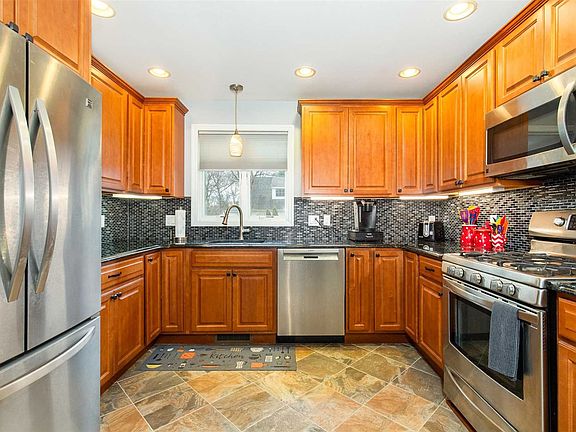 This charming, updated Hillside Lake home boasts 2 bedrooms and office/craft room, and is located on a quiet, no-outlet street. Relax in the living room with a stone fireplace with insert and hardwood floors. You will also love the beautifully updated kitchen, sporting granite countertops, stainless appliances, glass tile backsplash and porcelain tile floors All this and abundant customized cabinetry, too! Enjoy your dinners in your formal dining room, complete with hardwood floors and wainscoting. Your office, half bath, and 3-season room complete this level. Upstairs you will find 2 bedrooms and a full bath. Central air will keep you cool and the Generac generator will keep your power on. Great outdoor living here! Your living area opens onto a patio with a built in, granite-topped bar and grill, complete with electric. Don't forget about this pool! A 16'x 32' inground, completely fenced pool awaits you here. Convenient and close to schools, restaurants, shopping and parkways. Don't wait! Get ready for summer!