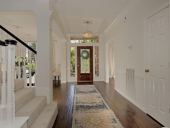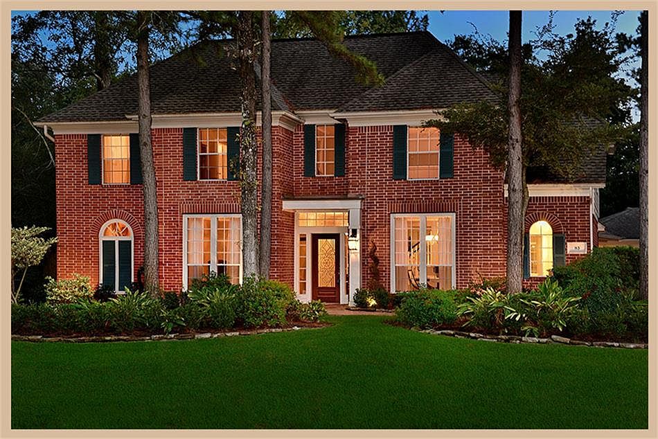 Stunning Village Builders home on a wooded lot in Cochran's Crossing! Nestled in the heart of The Woodlands, across from serene pond & close to all amenities - walk to Galatas Elementary! This home features a driveway gate, hardwood floors, brand new interior paint and new carpet, new fridge and new alarms and stunning trim work throughout. Open concept island kitchen with granite counters, double ovens & upgraded custom cabinetry opens to breakfast room & den with cozy gas fireplace; formal dining with chair rail; primary retreat down; 3 bedrooms & game room up; sparkling pool with new pump. No issues during Harvey!