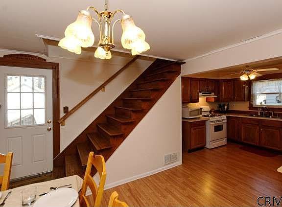 Gorgeous 3 bed, 1.5 bath with a spacious living room and side sitting room. Hardwood floors, carpeting, large eat-in kitchen with oak cabinets. Loft family room upstairs. Deep fenced backyard with trees providing privacy. Large deck and shed. Covered front porch. Upgraded plumbing, electrical, tilt in windows, doors, siding, 2 zone boiler, hot water tank, roof. This bright and sunny home is easy to maintain and ready for you and your family!