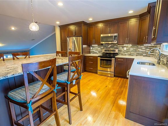 Beautifully maintained contemporary home in quite Orchard Hills section of Milford on a cul-de-sac. Open floor plan with 3 bedrooms, 2 full baths, vaulted ceilings, recessed lights and hardwood floors throughout. Living room with fireplace. Family room has sliders to the patio. Private and professionally landscaped back yard with composite deck and oversized 2 car garage. A MUST SEE.