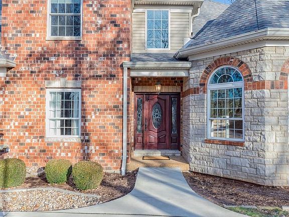 Stunning custom built 1.5-Story home nestled on 3+/- private acres in sought-after Rockwood School District! This gorgeous brick and stone front welcomes you into an inviting 2-Story Entry Foyer. A truly impressive Dining Room features a beautiful tray ceiling, and arched doorways. Tucked just around the corner is a stunning home Office separated from the main living space by lovely glass French doors showcasing the octagonal room with large half circle windows, and up lighting enhancing the turret ceiling and prominent chandelier. Gleaming hardwood floors flows graciously into the stunning 2-Story vaulted Great Room featuring custom lighting, and an impressive, atrium style wall of windows with peaceful views of the great outdoors plus a see-through gas fireplace! Your gourmet Kitchen has room for all to gather, and includes gorgeous custom cabinetry, granite counters and backsplash, a 2-tier butterfly island, spacious walk-in pantry, a stone fireplace in the adjoining Hearth Room, skylights, and French doors that open to the covered low maintenance composite deck. The impressive Master Suite includes hardwood floors, a bay window with more gorgeous views, a tray ceiling, dual walk-in closets, and a stylish en-suite Bath including dual, comfort height vanities, water closet, jet tub and separate shower. Completing the Main Floor you find a Powder Room, and a large Laundry Room which includes a convenient pet shower! Take the staircase to find an incredible view from the catwalk of the Great Room, and entertain family and friends in the spacious Loft perfect for game nights! Just down the hall, are 3 spacious Bedrooms, and 2 full Baths! Additional features include: 9 foot pour, walkout Lower Level, ready for your finishes; new concrete circle driveway (2017), a 3-car garage, new roof (2017), whole-house speaker system, and new carpet upstairs (2018). Location could not be better! Just minutes to shopping and restaurants, and convenient access to Highway 44!