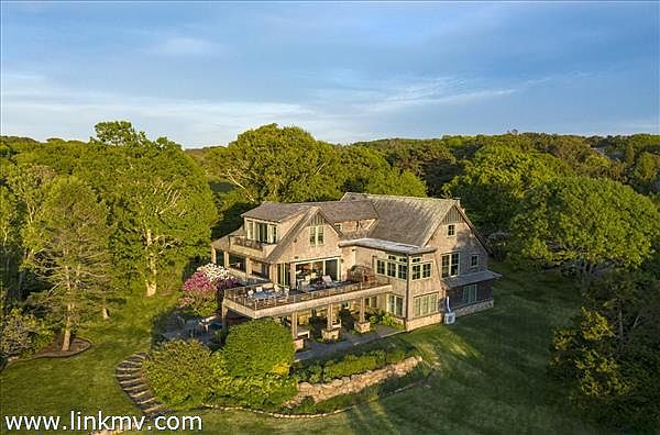 Beautifully renovated, this substantial water view home in Makonikey will impress you with its strong Vineyard Sound and sunset views. Quality materials set this home apart from others. Well- designed post and beam with high ceilings and an open floor plan. The main living and dining room have a field stone fireplace with wide pine floors. The gourmet kitchen includes an eight burner Viking stove and soap stone counter tops with French doors opening to a large deck with 180 degree water views across the Vineyard Sound. The private master suite includes a luxurious master bath and steam shower and water view balcony, office space and multiple closets. Three further bedrooms are on the lower level: one guest suite with private bath and doors to the patio and hot tub. Two large bedrooms share a bath. On this level you will also find a bonus room suitable for an office or gym, and the systems room. The home benefits from being part of the Makonikey association with private beach access. The landscaping that surrounds the house has been thoughtfully designed with circular driveway, beautiful stone work, mature trees and perennials. You will also find a separate art studio/workshop building nestled into the landscape.