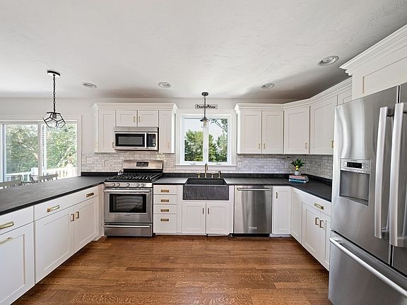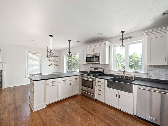 - Kit Dscrp: Dining Area, Flooring - Hardwood, Cabinets - Upgraded, Breakfast Bar / Nook, Stainless Steel Appliances, Recessed Lighting, Countertops - Upgraded, Remodeled, Balcony / Deck, Slider, Lighting - Pendant