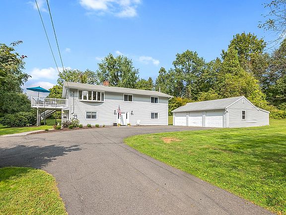 Single family with accessory apartment homes are very rare in Southbury! The current owners live in the upper unit and rent out the lower unit, bringing in $1,300 per month (heat and hot water included). Market rates would likely support $1,400/month for the lower unit and $2,000/month for the upper unit. This is a great opportunity to live in Southbury while your tenant pays the mortgage or bring the in-laws with you! This move-in ready single family with accessory apartment (two family) home is situated on 1.25 private acres in the heart of Southbury. Set back from the road with a large, flat yard surrounded by woods, you get to enjoy nature and wildlife while being within walking distance of grocery stores, restaurants, medical offices, and retail outlets. The larger unit occupies the entire top floor and roughly 30% of the first floor. Upstairs it has 3 bedrooms and 2 full baths with hardwood floors throughout. The living room and dining area are surrounded by windows letting in lots of natural light and centered around a floor-to-ceiling masonry fireplace. There is a large, freshly painted deck off of the living area. The kitchen has granite countertops, stainless steel appliances (electric oven/range, dishwasher, refrigerator/freezer), and a stackable washer/dryer. The downstairs contains the tiled entryway, closet space, and a large carpeted spare room great for a home gym, playroom, or workshop. The upstairs unit has central air conditioning and hydro-air heat. The smaller unit occupies roughly 70% of the lower level, has 1 bedroom and 1 full bath. A dedicated entrance on the side of the house leads you into the cozy, carpeted living room area centered around a large fireplace. It flows into the kitchen with freshly painted cabinets and a newly refinished sunroom. From there you enter the hallway which has a washer and dryer, then onto the bathroom and bedroom. The lower unit is heated by baseboard hot water and cooled with window units. There is a large detached 3 car garage that has additional storage space built onto the backside of it. Both units share an oil fired boiler supplying on-demand hot water. Well and septic on the property. There are separate electrical meters for each unit. The property is for sale by owner. All appliances are included. The current owners are moving across town and the downstairs tenant is moving out on October 15th.