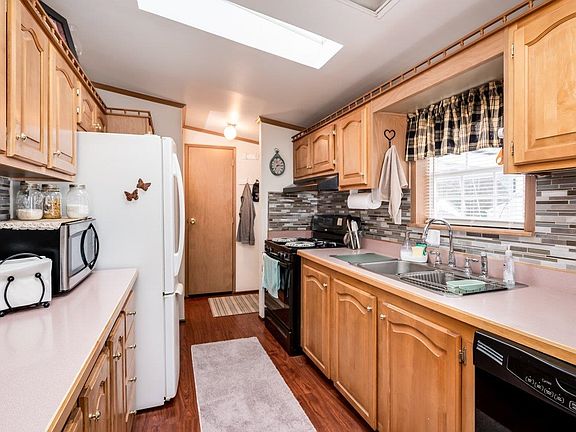 Looking to downsize? This home is the absolute perfect fit! Welcome to 55+ Eagles Rest community. 3 beds, 2 baths, just under 1500 sq. ft., on nearly a 1 acre lot. The kitchen is large with updated appliances and plenty of counter/cabinet space. Kitchen opens up into a spacious dining area leading into the warm and bright living room where you can cozy up to the fireplace. This home has been impeccably maintained and upgraded/updated over the years. Heating system has been replaced and roof in only 7 years old. Relax on the front farmers porch or covered back deck. Bonus: the addition of an oversized 1+ car garage plus shed for storage! Lot rent is low and the neighborhood is wonderful, quiet and well kept, making this the perfect retirement location. RV storage included in lot rent. Open house: Saturday, 02/25/23 from 11am-1pm