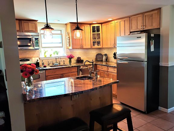 Located at the end of a peaceful dead end street is this well maintained 4 bedroom, 3 full bath home situated on a private lot. This Light & Bright home was made for entertaining! An attractive rocking chair front porch, secluded backyard with a two tier deck and a built in hot tub all on the outside. The interior boasts an open floor plan w/ a huge updated country kitchen, granite counters, SS appliances, large family room with a wood burning stove, 4 generous sized bedrooms, 3 full baths including a master bath w/ custom oversized shower. The home has been freshly painted. Just a short walk to the NYC Ferry service, minutes to the Jersey Shore Beaches, fine dining, shopping and all major highways. No flood insurance required.
