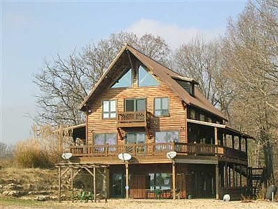 Over 100 beams, posts, and braces in this showcase Timber Frame home with hand carved details. A lodge to call your home, vacation retreat or business venture. Artistically situated on 40+/- acres for a walk, hike or ride through the woods or reflect in the productive open fields and garden areas. Each bedroom has its own walkout deck, a part of the overall 1500 +/- sq ft of decking surrounding the home. Full finished walkout basement rated as first floor, includes a second kitchen. Ideally situated for multi-family living,conference/seminars or an artists retreat. The detached shop/office nestled privately overlooking the enchanted forest can be a guest house or even transformed into your 1st class stable. Much thought put into this blending of living spaces. Move to manifest your dream of an Ozarks retreat. More land/or less can be sold with property.
