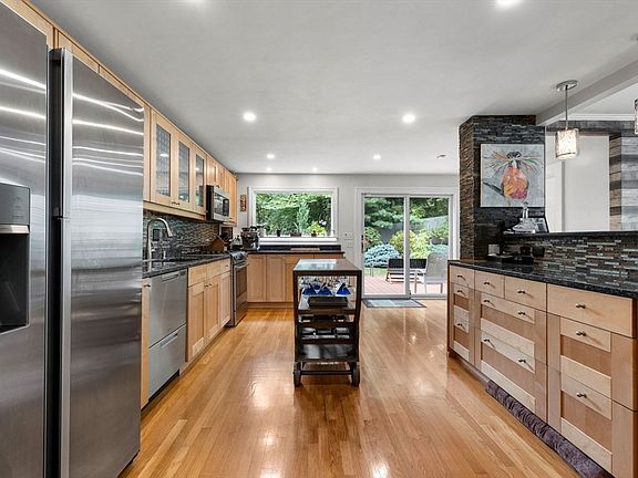 Beautifully updated home with added square footage from a 2021 renovation. Features include a renovated kitchen (2018–2020) with dual-fuel stove, open floor plan, and oak hardwoods throughout. The living room boasts a stone accent wall, gas fireplace, and pre-wired Yamaha home theatre. Upstairs includes an expanded second bedroom and a third bedroom/optional suite (2021) with spa-like en suite. Primary bath (2025) offers heated floors and built-in storage. Finished basement (2024) with new tile, heating, and custom storage. Major upgrades include new roof and rebuilt garage (2021) with Tesla charging station, furnace and A/C (2023), and on-demand water heater (2024). Outside, enjoy a private backyard with mature landscaping, a deck, and a driveway for 3 cars. Furniture is negotiable.
