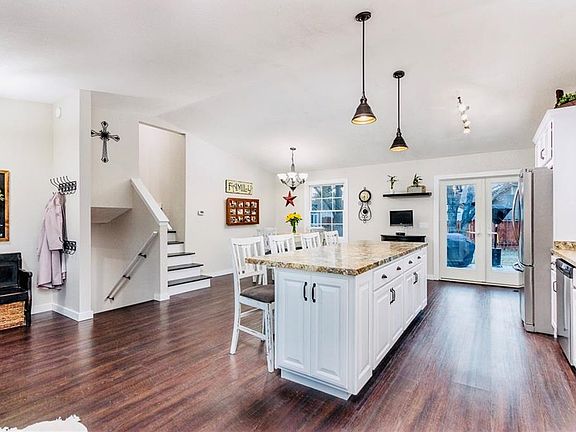 You will fall in love with this one!! This stunning home features 5 bedroom/2 ¾ baths and is nestled in a quiet cul de sac with mature trees & extra parking pad. An updated kitchen w/ white custom cabinetry, large island, and stainless appliances opens to dining and a great entertaining space. French doors lead to a fully fenced backyard oasis with expansive patio and built-in gas fire pit. On the upper level, a spacious master suite featuring a shiplap accent wall, new master bathroom w/ stand alone tub, tiled shower, & double sinks provides a perfect sanctuary. 2 beds & an additional renovated 3/4 bath are on the upper level as well; 1bed, laundry, & family room on lower level; 1 bed w/ egress & full bathroom on lowest level. New in 2018/2019: Windows, Hardie board siding, gutters, soffit, facia. Ambien tankless water heater. This is a must see home! Hot tub to go w/ sellers