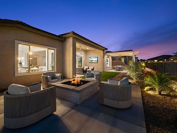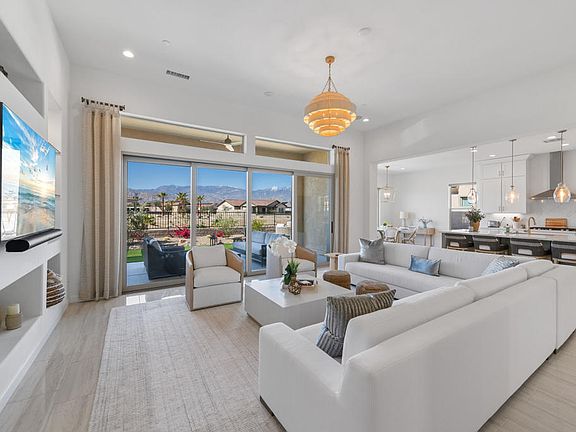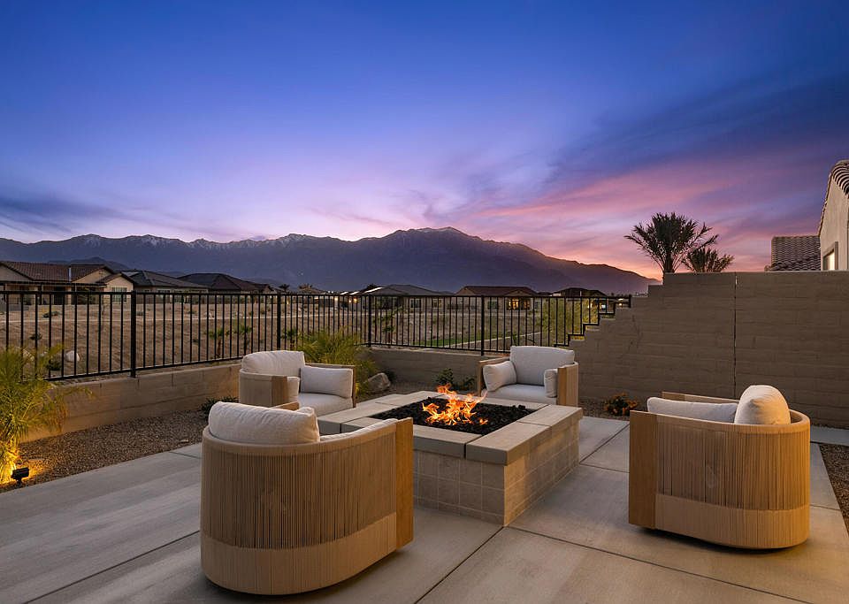 As soon as you enter this pristine 2022 built residence you are greeted with wide mountain vistas in the great room and an abundance of natural light, as the property capitalizes on not having any neighbors adjacent to the backyard, which faces primarily south. This lightly used Journey- Encore Series floorplan has numerous attributes: wide open concept great room with massive folding sliding door, surround sound, and plenty of entertaining space; Chef's modern kitchen with stainless steel appliance package, inviting breakfast bar and nook seating, quartz countertops, coffee bar station, and walk-in pantry; separated primary suite with a ten foot tall walk-in shower, large clothes closet, wood plank tile flooring, and views from bed; two guest bedrooms; dining room with seating for eight with wet bar and wine storage, motorized shades and remote controlled ceiling fans in all bedrooms, high ceilings throughout, tankless water heater, and a solar power system. Additionally the owner significantly upgraded the backyard with a covered patio and fan, barbeque station, landscape design including new turf, and firepit gathering area. Del Webb Rancho Mirage is the newest 55+ community in the Coachella Valley, and features a plethora social activities, state-of-the-art amenities, guard-gated, and is just minutes from shopping, golfing, and dining options. Furnishings per Seller Inventory list are negotiable outside escrow.