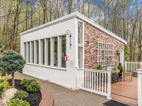 Architectural delight! Open flowing floor plan-Living & Dining Rooms lined w/windows open to private wooded views, sunken living room w/vaulted ceiling and fireplace, Gorgeous Hardwood flooring & crown molding throughout, Generous size bedrooms and master retreat including luxurious en-suite. Gourmet Cherry Kitchen, ceramic floor, Granite counters, and Stainless Appliances! Kitchen opens to the maintenance free deck and adjoining "Spa" building. Easily convert into home business, work shop, or art studio-very flexible bonus space light and bright w ceramic flooring, high ceilings, and lined with windows. The Lower Level of the home is Huge & Finished-offers an additional bedroom or office, Family room w/fireplace, wet bar/kitchen area, laundry, bathroom, loads of storage &accesses the over sized garage! Private entrance and patio could be separate living area for today's multi-generational families. Plenty of parking at the front door, making level entry a breeze. Unique/Custom Home!
