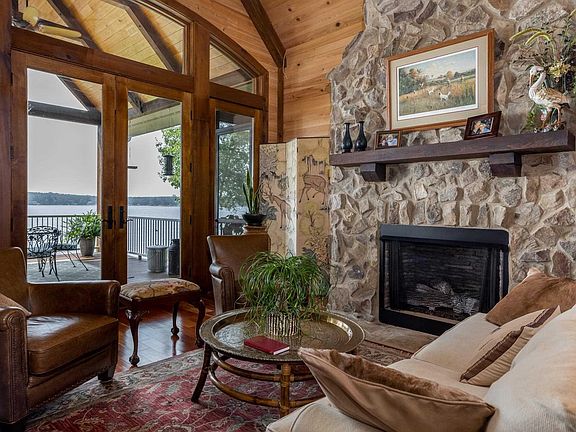 This beautiful home is located on 1.18 acres in a gated community on Lake Wateree and features gorgeous hardwood floors throughout!Amish produced wood beams, columns, walls & trim adorn the living areas, kitchen, dining room and bedrooms.Gourmet kitchen eat in has Subzero refrigerator, Wolf 6 burner gas stove with Vent-a Hood,Wolf steam convection oven, Miele dishwasher, Marvel small cube icemaker, custom kitchen cabinets, copper kitchen sink with disposal and copper wet bar sink, granite counters and spacious island & walk in pantry. Nice keeping room off kitchen has fireplace and French doors to the outdoor living area. Master suite on main floor has cathedral ceiling, private bath with large his/her closets and vanities, Jacuzzi tub & custom tiled shower. Bedroom 2 is also on the main floor with private bath. Additional 2 bedrooms upstairs both have private baths and all rooms have spectacular Lake Wateree views and there's also a bonus/media room that is pre-wired for your needs! 8ft doors throughout downstairs of main house, sliding barn doors in living room, study/office and master bath.Enjoy your days and evenings either on the screened porch or on the round outdoor porch with wood burning fireplace and gorgeous views of the big water. Outdoor features include private boat ramp, boat dock with remote controlled lights and boat lift, there is an another floating dock in the cove.There is an 1,064 sq ft 1BR/1BA apartment over the 3 car garage great for guests or in-laws