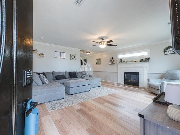 This is it! This beautiful home just had new carpet added, entire inside of the house painted including ceilings and kitchen cabinets, new stainless steel appliances, new ceiling fans in all rooms, new french doors being installed in Nov 2022, Smart Technology, Wi-fi enabled garage door opener with battery backup, ring doorbell, Google Next Learning Thermostat, and new light fixtures. Large eat in kitchen with a walk in pantry, spacious family room with a gas fireplace. Nice size back yard with a 12 X 16 covered deck. Neighborhood pool and paths. Close to the elementary school. 3 bedrooms and 2.5 baths. Primary suite with a private bath and walk in closet. Recently painted fence. This home is move in ready!