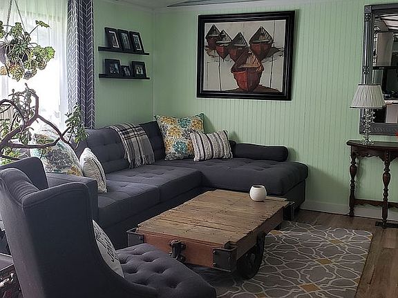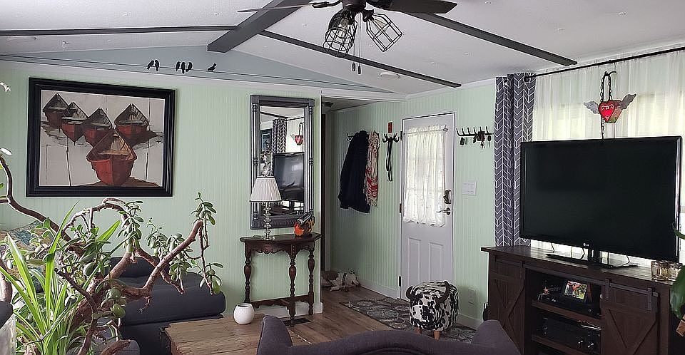 This newly renovated mobile home is conveniently located 15 minutes from Montpelier and Barre. One of it's best features is the open layout with large windows, vaulted ceiling and a skylight that makes the great room very inviting as soon as you walk in. This home has two bedrooms and two full bathrooms and many new updates: New laminate floor, kitchen cabinets, tiled countertop, range hood, kitchen sink and faucet, reverse osmosis water filtration system, wainscot paneling, hot water tank, ceiling fan, light fixtures, bathroom cabinets, windows, and keyless door lock. Built-in speakers in the great room that can be connected to any system. Kitchen has a range, venting hood, double wall oven, side by side fridge, dishwasher, and a peninsula with seating area. Laundry area, washer and dryer are included. This is also a smoke free home! Front porch covered by an awning. Lots of storage with two small detached sheds and an attached barn. Brand new composting bin. The lot at Sandy Pines Mobile Home Park has: - Three parking spots right in front of the home. - A front yard with a lilac tree, a rose bush, a raspberry bush, lots of established perennials, a raised for a veggie garden, and a stone patio with an outdoor table. - The backyard is fenced in and has a fireplace. - Direct access to the Vast trail from the property Rent at the mobile home park is $449 month and includes water, sewer, trash, plowing, and keyed mailbox. Very well maintained and quiet neighborhood. Background check and approval by the park required to move in. Pets are allowed upon approval. But, of course, you can move the home to wherever you like after purchase. Mobile Home Specifications: 14' x 72' Skyline built in 1986