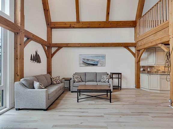 This unique, bright and recently renovated timber framed home close to the beach is sure to take your breath away. Everything about this home has been updated and refinished all while including unique and reclaimed features to add lots of character. With custom upgrades and unique touches throughout, this 3 bedroom, 4 bath home can be your dream home or an investment/rental opportunity. The spectacular beams in the great room draw your eyes up to the overlooking loft area above, all while large front windows and back sliding doors let in an exuberant amount of light to the open concept kitchen, dining, and great room. The kitchen offers loads of storage, undercabinet lighting, granite counter tops, touchless taps and a butler's pantry. Also on the main floor you will find the laundry room as well as a large primary bedroom complete with 4 piece ensuite and access out onto the deck. This house was custom built with efficiency in mind with spray foam insulation, on demand water heater, cellular composite siding, metal roofing, and high efficiency hot water baseboard heating allowing each room to control their own temperature. Use the gorgeous reclaimed stairs (1890's) to reach the second level to find 2 additional bedrooms and bathrooms plus a large loft/family room. The unfinished walk out basement (with in-floor heating) is teeming with potential. Take the five minute stroll to the beautiful Lake Erie beach, utilize the 2.5km of Provincial Park beach, or simply enjoy the views at home while you sit out on the deck or by the fire pit in the completely private back yard that backs onto green space and the river.