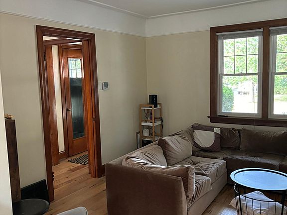 Beautiful older home with hardwood floors and large windows on a quiet street. Three bedrooms, one bathroom, large yard. No smoking. Driveway parking for two cars. Renter is responsible for gas, water and electricity. Tenant responsible for cutting the grass and shoveling the driveway plus sidewalk. Lawnmower provided, storage available in shed.