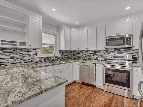 Stunning, turn key and ready for new owners, this special home caters to a comfortable and exceptional lifestyle. Ideally located, set in the Sachem Head area overlooking a private, wooded area. Like to entertain outdoors...? Exterior features include a spacious paved driveway for plenty of parking, covered rear deck for year round enjoyment, patio, new front walkway, and a 2 car port.. Upon entering you will notice gleaming hardwood floors, an inviting and sun filled open concept main level with a spacious living room, dining and kitchen area. The renovated kitchen features granite countertops & new stainless steel appliances. You will find a master suite with completely renovated master bathroom, along with 2 guest bedrooms, and fully remodeled guest bathroom. Off the kitchen is access to the deck & yard with french doors, or in the walk out lower level, you will find a side door which leads to a convenient mud room. The lower level is finished with 2 more rooms, perfect for a rec room or additional living space. An energy efficient home, you will find a new furnace, new central air, new hot water heater & new roof. Don't miss out on 83 Sachem Head Road in the heart of Guilford. New septic tank and public water connected! Prime location within a mile of the water, center of town, public transportation, restaurants, shops and more.