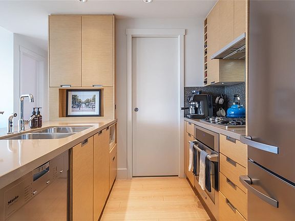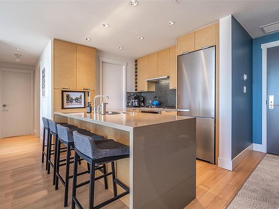 Promontory, by Bosa Properties. SUPERB VIEWS of the Outer Harbour, Ocean, Olympic Mntns, Sooke Hills from this 14th floor. Mostly WEST exposure with floor to ceiling windows to enjoy the expansive views, terrific light, & afternoon sun. Awesome sunsets! High end finishes, quality fixtures, Miele & Electrolux gas cooktop, & A/C. Nice custom built-ins throughout maximize storage. Floor to ceiling windows maximize the light. This is a steel & concrete building. Secure underground parking, with TWO parking stalls, storage, ample bike storage, gym, owner's lounge and a full time concierge. Walk to downtown in 10 minutes. 5 mins and you are at Boom & Batten for a meal and/or refreshments. Westside Village shops are a 5 min walk. This is a pet friendly building, with a dog park on the door step. A pleasure to view this superb home.