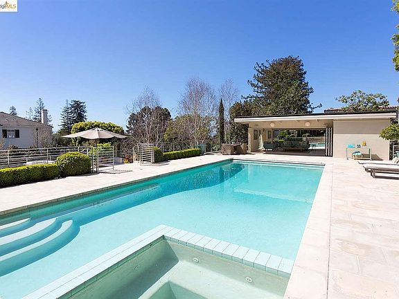 The perfect balance of modernity, style & comfort with 3 floors of living & entertaining space can be found in this breathtaking contemporary estate with sweeping San Francisco Bay views on over a half acre of manicured grounds. This level-in retreat enjoys abundant natural light in a private setting with an expansive level lawn, pool & inviting pool/guest house. Dramatic living room with windows on 3 sides, centered by a fireplace set in French limestone. Professionally equipped chef's kitchen with 2 Gaggenau ovens, 3 dishwashers, a Thermador six-burner gas range, Sub-Zero refrigerator & U-line refrigeration drawers. Custom walnut cabinetry & stainless steel countertops frame the marble center island. Adjoining family room with floor-to-ceiling windows & skylights bringing the outdoors in. The upper level offers 3 bedrooms & 3 spa-like baths, 2 that serve the sumptuous & private master suite. The lower level is home to the 4th bedroom & bath- could be a family rm or guest quarters.