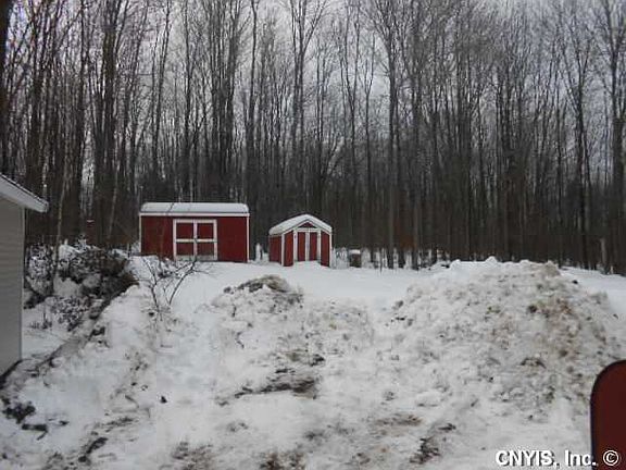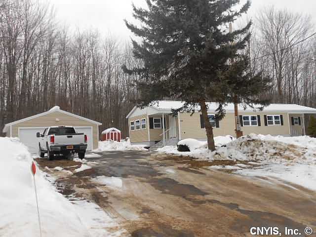 Terrific home on 2+ acres of wooded land. 2-car garage, 2 sheds & 1280 sq. ft. of living space. Totally remodeled from the top to bottom w/NEW metal roof, vinyl windows, shutters, maintenance-free vinyl exterior, dishwasher, fridge, stove, range hood, siding, garage doors, light fixtures, toilets, sink fixtures, countertops, carpeting, ceramic tile, flooring, fresh paint & more. Close to bus line & minutes from Route #81. Gas is at the road on the same side of the street. Public water. Unbelievable value for the price! Call Listing Agent, Bob Schultz: (315) 671-1641 for further details.