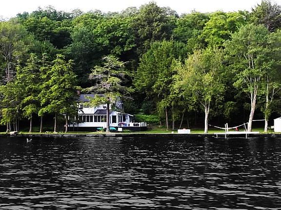 This privately situated home on the shores of motor-boat friendly Tennanah Lake, just a few miles from Roscoe and Route 17, offers all the lake splendors you are looking for ... dock for your boat, sprawling lawn for the children, screened porch, spacious deck and 5-6 bedrooms (one of them a master suite) with 3 full baths, for family and friends. Totally renovated in 1986, Birch Spring Cottage has been in one family for 91 years. Centrally heated during cool early summer or late autumn nights, there is also a brick fireplace in the living room. Overlooking the lake and facing west affords beautiful sunny afternoons and early evenings while sitting on the screened porch or out on the deck. Birch Spring Cottage comes totally furnished and equipped, just as you see it. So bring your overnight bag to the closing and stay for a while. It could be the beginning of your family's decade long ownership.
