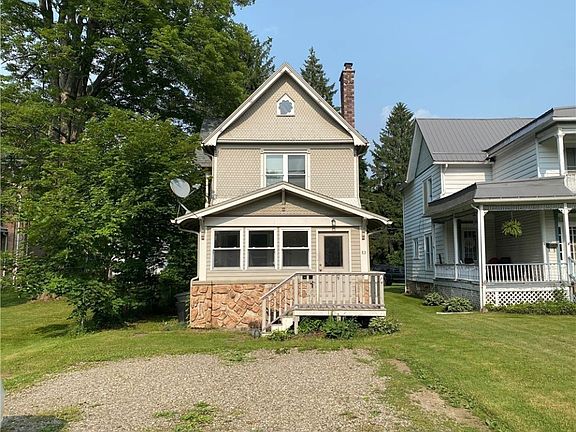 What a charming single family home designed with traditional architectural style that blends seamlessly in this historic district. Great Location and exceptional updates make this the perfect choice. Enter through the enclosed sun porch. The main level is comprised of a spacious living/dining room where natural light pours in through large windows creating a bright atmosphere. Natural wood floors and a gas fireplace make this room cozy. In addition there is a custom dog space that any pup would be lucky to have. The kitchen has bright white cabinets and a breakfast nook. First floor laundry is conveniently located in the first of two updated full baths. The owner has added basement access to the inside of the house by opening up the back of the first floor bedroom. Upstairs you will find an additional 2 bedrooms an office space with private balcony, and a full bath with double sinks. This backyard offers a private retreat with a custom built fenced in yard and new deck. There is space for a fire pit and the hot tub stays. This well maintained home presents a wonderful opportunity for a peaceful lifestyle in a charming neighborhood with easy access to shops, restaurants, and parks.