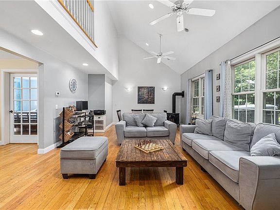 Don't let the front of this adorable Cape fool you, there is so much more space then you think! As you enter this shingled cottage home, you will be welcomed into a spacious & inviting living room with a Cathedral ceiling open to the second floor hallway. The open floor plan allows you to define spaces as needed and to create a flow that suits your lifestyle. The main living space offers multiple windows to let the natural light in & an iron cast gas stove tucked in the corner for cozy winter evenings. The dining area allows for a large table for entertaining or can be incorporated into additional hang out space. Off the main living area is an eat in kitchen which is smartly tucked away, while the eating area is centered next to the sliding glass doors which lead to the outdoor deck. Off the kitchen is the den, with a glass front door for privacy but still allows for natural light to come in. This room makes for a great first floor bedroom option. A full bath with stone tiled shower round out the first floor. The 2nd floor has a spacious feeling with the open hallway that looks down into the main living area. Off the hall you will find two bedrooms, both with south facing windows that offer great natural light. The full bath offers tons of room, with one entrance from the hall and one from the larger of the two bedrooms, as well as the laundry. The outdoor space is completely fenced in, shed for storage & you are moments away from water access and the local beach. A true gem!