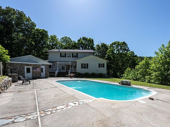 Custom built Mountain View 4/3Home w/ 2 bedroom guest quarters and POOL situated on 9.61 acres w/end of road privacy off a paved drive! Wonderful outdoor living space w/huge wrap around deck & in ground fiberglass pool&patio.Detached double garage w/covered walkway to home.Large Foyer area with high ceilings.Oversized main bedroom &bathroom with large soaking tub.Great kitchen with breakfast nook open to living room area w/ freestanding jotel wood stove that overlook the deck and pool.Main level also has an additional bedroom &bathroom,formal dinning room perfect for entertaining.Upper level of home has 2 addit'lbedrooms&bath w/open area rec/den area.CentralVacuum,New lifetime roof w/gutter-guards.Guest home w/new mini-split unit,gas logs&4RoomStorage below living space
