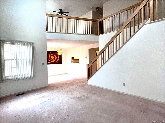 Welcome to Fox Ridge! Pretty and very well maintained 2 bedroom 2 1/2 baths three level townhouse. Spacious kitchen with lots of cabinetry and counter space, Eat in kitchen area, large living room with vaulted ceiling, dining room with sliders to deck with amazing views! Primary bedroom with large bath and plenty of closet space. Second bedroom, loft area, which has multiple possibilities. Full partially finished walkout basement with plenty of room for storage, attached one car garage. One of the best locations in the complex. Pool, tennis courts and clubhouse. Fantastic commuter location just minutes to I 84, trains, shopping and village of Fishkill.