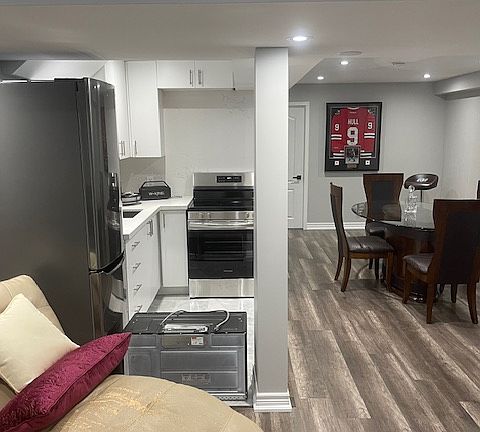 Available for rent a newly renovated 2 bedroom 2 bathroom walk-out basement apartment located in a newer Ajax development, fully furnished with all the bells and whistles and ready for immediate move-in. This large apartment offers full kitchen, laundry and separate entrance to the furnished unit. Parking also available at the property. This amazing unit also offers shared access to backyard space for summer BBQ's and outdoor fun. Located close to many community amenities and green space as well as close proximity to 401 and go transit. Tenant is required to cover 1/3 of electricity and water expenses. Looking for qualified prospects, If interested please contact us for an appointment to view serious inquiries only. No smoking