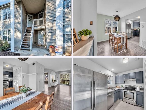 Exceptional one bedroom condo is updated and move in ready. End unit for ultimate privacy. Open concept living. Kitchen has plenty of cabinet space and Includes all appliances including refrigerator. In unit laundry includes stackable washer and dryer. Bedroom features ceiling fan, lots of natural light, and large walk-in closet with shelving. Updated full bathroom. Fully electric utilities. Peaceful view from your private back deck, two assigned parking spaces, community pool. Sugarwood Condominiums has easy access to 364, 94, 70. MOVE IN READY! Location: End Unit, Upper Level