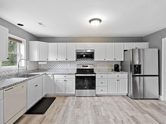 Welcome to this beautifully maintained 3-bedroom, 2.5-bath Colonial located within the desirable Wappingers Falls School District, offering comfort, style, and functionality on a picturesque lot with a beautifully landscaped yard. Step inside to a bright and welcoming foyer featuring gleaming hardwood floors and a warm two-story staircase that leads to a spacious, open-concept layout. The main level boasts a modern eat-in kitchen with white cabinetry, granite countertops, stainless steel appliances, and a stylish tile backsplash, flowing seamlessly into the dining area and cozy living room—perfect for entertaining or relaxing. Upstairs, the primary suite features vaulted ceilings, an oversized arched window, and an updated ensuite bathroom with a modern vanity and glass shower. Two additional bedrooms and a full bath complete the upper level. Additional highlights include central air conditioning, hardwood and luxury vinyl plank flooring throughout, a full walk-out basement, and a detached 1-car garage with extra storage. The expansive backyard is ideal for gatherings with a multi-tier Trex deck, above-ground pool, and plenty of open space for play or gardening. Conveniently located near the Taconic State Parkway, Stormville Airport, and local schools, this home offers the perfect combination of comfort, convenience, and peaceful Hudson Valley living—all you need to do is move in and start making memories.