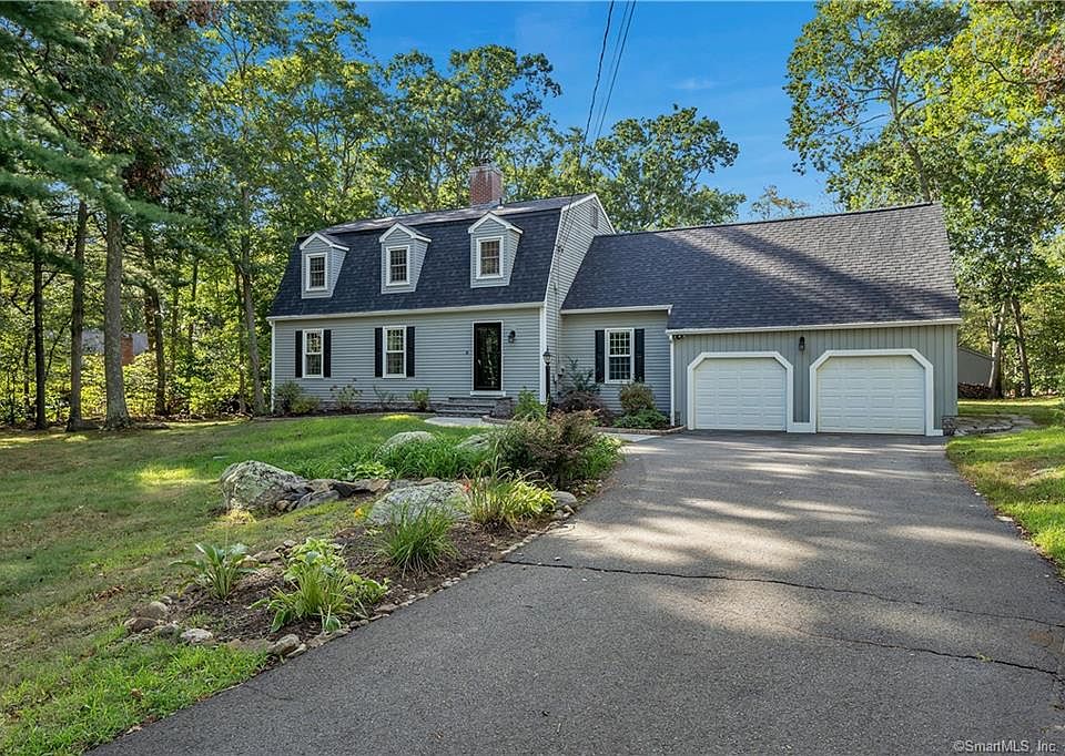 Located within a cul-de-sac neighborhood, this 4 bedroom, 2 full and 1 half bath colonial with gambrel roof has been recently updated and offer over 2,000 SF of living space. Hardwood floors throughout, a wood-burning fireplace in the living room for those colder New England winter months. The updated eat-in kitchen provides a light and bright space for meal preparation, quartzite counter-tops, marble tile back-splash, plenty of storage space and two pantries, one for food items and one housing the washer and dryer. A home office w/built-ins, studio powder room round out the first floor. All four bedrooms are found on the second level, with the master featuring exposed beams, two closets and a full bath w/shower. A second, updated, full bath services the other bedrooms. Nicely sites on a 1-acre lot proving a private setting and conveniently located minutes to major highways and the historic town green. NEW roof, gutters and chimney 2019, updated kitchen and baths, NEW furnace 2019. Please ask for list of additional upgrades and improvements. Invisible dog fence.