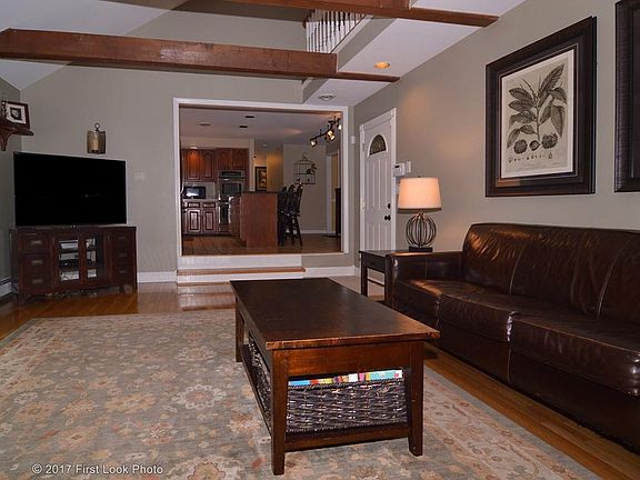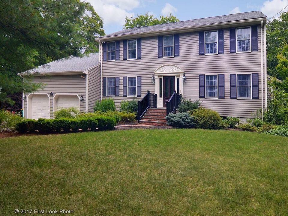 Terrific Colonial with open floor plan w/ private setting; flexible floor plan designed for entertaining & everyday living. Hardwood floors and contemporary color palette throughout. 4 bedrooms, 2.5 baths. Kitchen is the gathering room featuring cherry cabinets, Corian counters, cook-top, wall oven and island. Open to the step-down family room; a warm and inviting space w/ floor-to-ceiling brick fireplace, cathedral ceiling, interior balcony & atrium door to expansive deck. Entertain in Dining Room hardwoods, crown molding & chair rail. Front-to-back Living Room with bow & bay windows. Spacious Master bedroom with multiple closets, private bath and loft/Office area overlooking family room. 3 Additional bedrooms & main bath complete the 2nd floor. Fenced in backyard with Shed, professionally landscaped & irrigation. Lower level is ready to be finished. Convenient location with easy access to schools & train.
